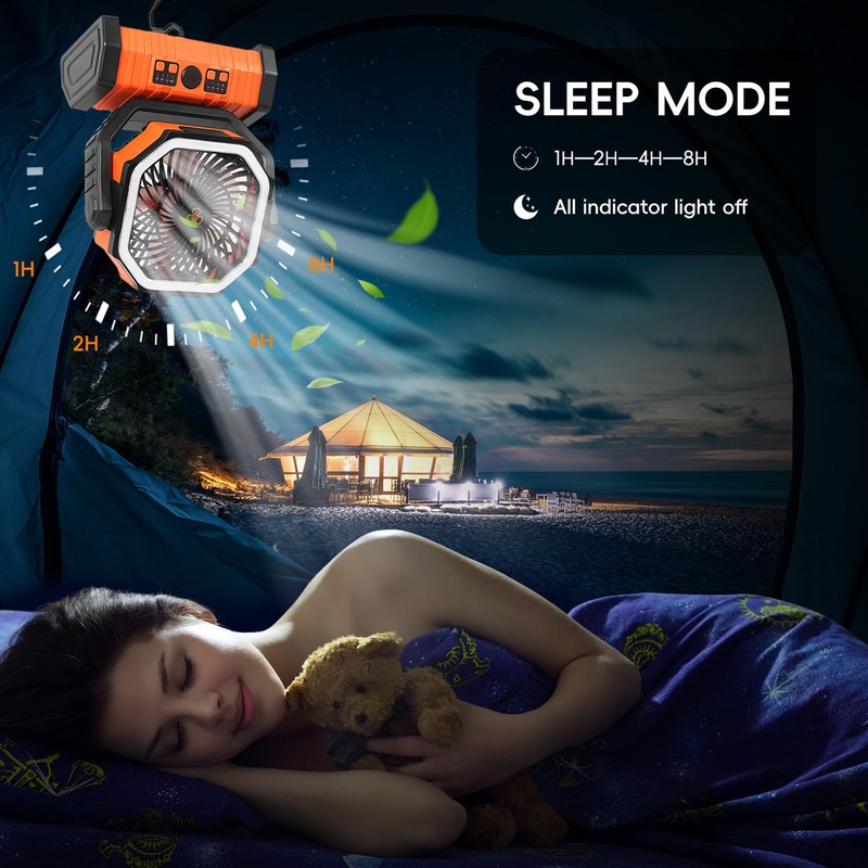 - 20000mAh LARGE CAPACITY: This camping fan equipped with 20000mAh capacity battery, except fan function, it can also light and charge other electronic devices, it can work max 138 hours, ideal for camping, car and emergency situation