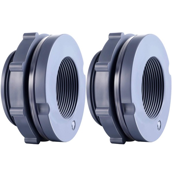 Outus 2 Pieces PVC Bulkhead Fitting for Rain Barrels, Aquariums, Water Tanks (1.25 Inch)