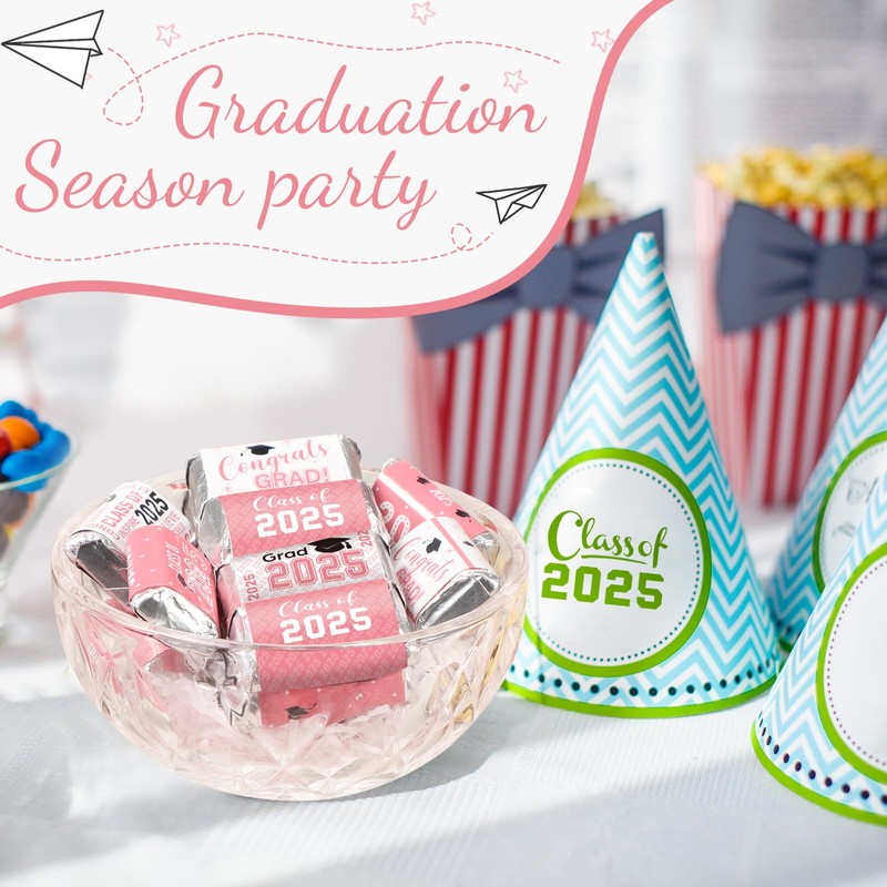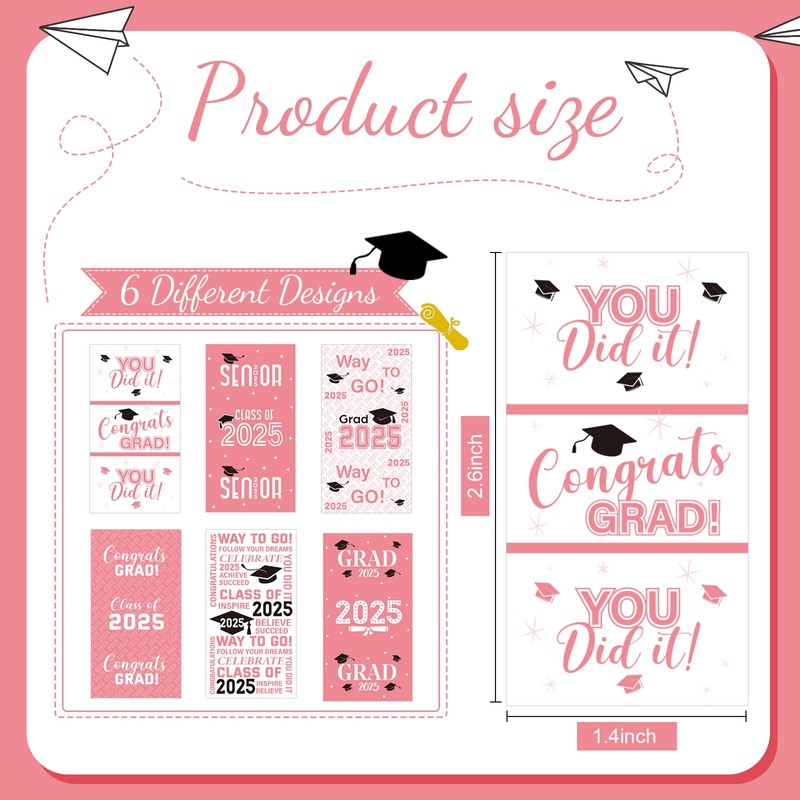 Outus 2025 Graduation Decoration Label Sticker Congrats Mini Candy Bar Wrapper Class of Party Supplies College High School Nursing Grad Celebration, Candy Not Included (Pink, 90 Pcs)