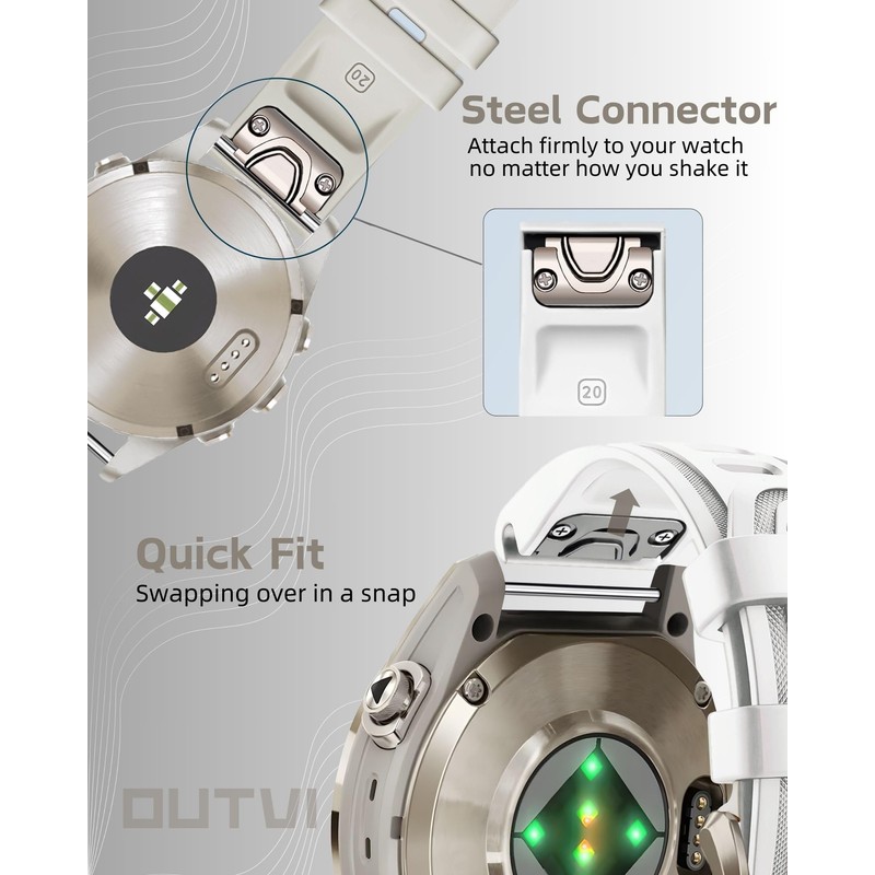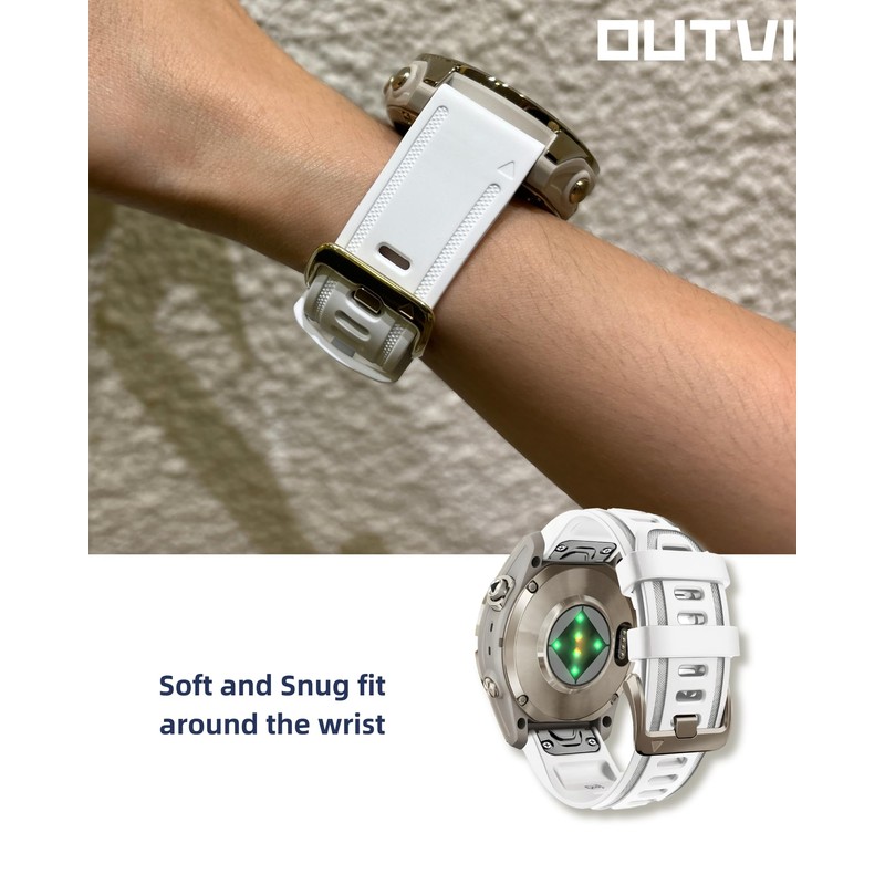 OUTVI 20mm Quick Fit Watch Band for Garmin fenix 5s 6s 7s pro solar silicone 20 bands replacements with light gold buckle for garmin epix pro gen 2 42mm Descent Mk2s/3/3i Short for Women White