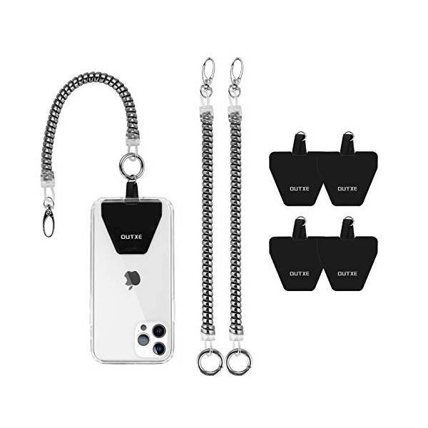 OUTXE Phone Lanyard Tether with 4 Patch- 2× Phone Tether, 4× Phone Patch with Adhesive, Compatible with Smartphone- Silver