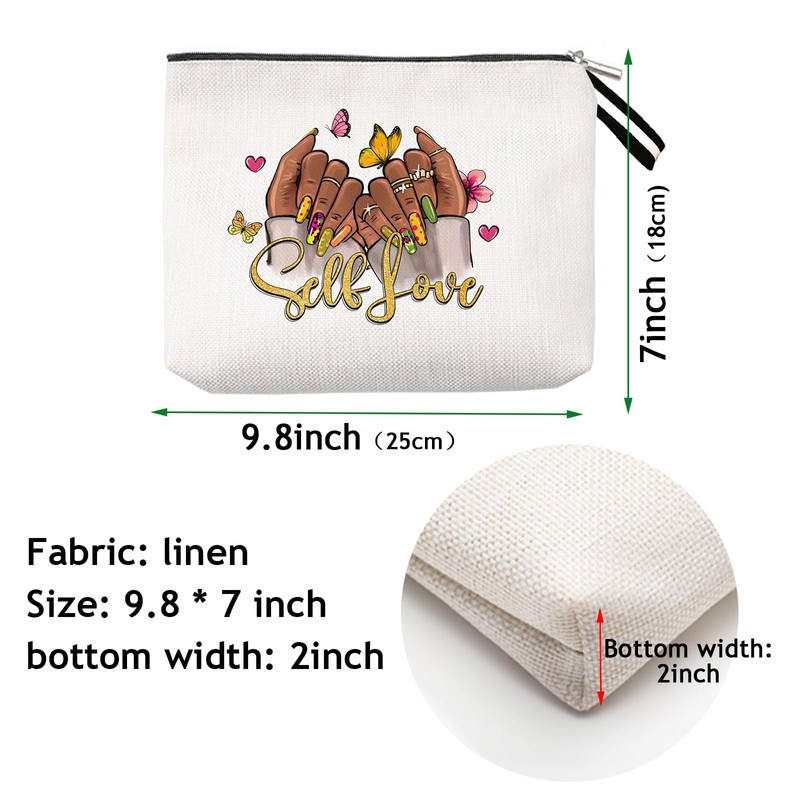 - 9.8″W x 6.7″H. Natural Beige, black zipper with a silver handle. cosmetic bag adopts Double-sided 3D printing and not easy to fade.
