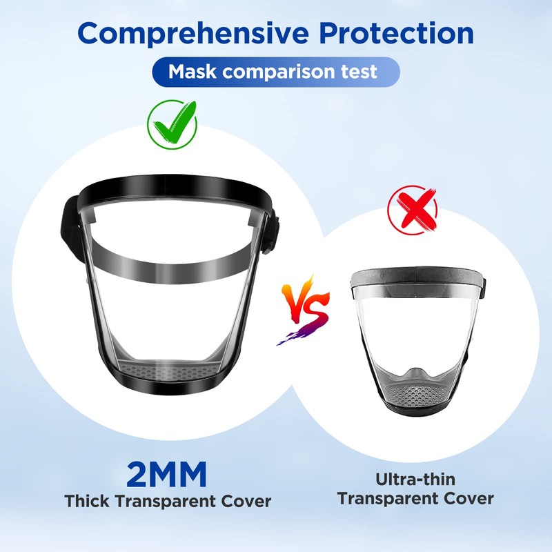 • 【Full Face Protection Mask】Our clear face shield provide all-round face protection for your eyes, mouth and nose, effectively blocking out droplets and particles. Whether you're on a busy street or exploring the great outdoors, you'll feel safe and secure.