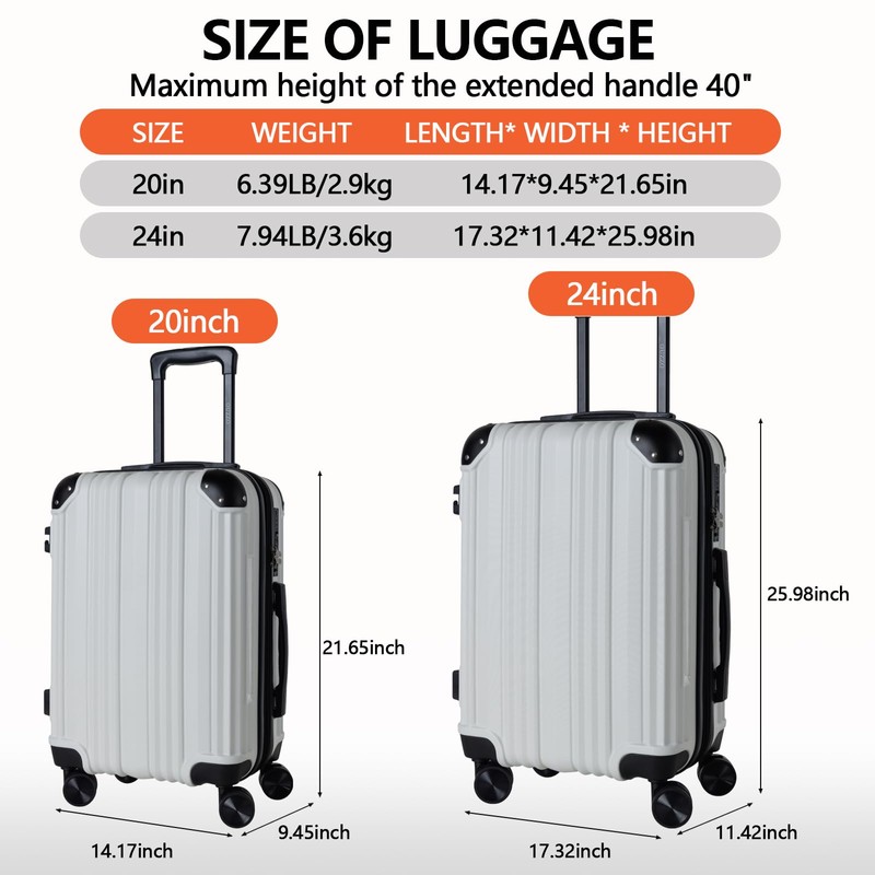 - DUAL-SIZED SET FOR FLEXIBLE PACKING: This set includes a 24-inch and a 20-inch suitcase, offering ideal packing space for both short trips and extended vacations. The expandable design adds extra room for flexibility and convenience.