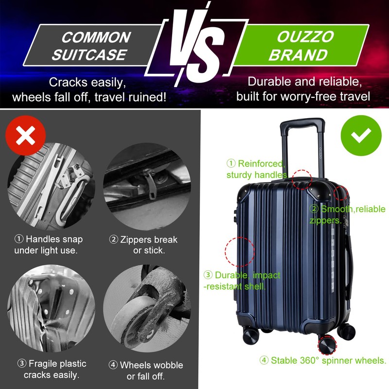 - CORNER PROTECTORS FOR ENHANCED DURABILITY: This 2-piece luggage set features durable corner protectors that shield your luggage from impacts, scratches, and abrasions. Designed for frequent travelers, these protectors ensure long-lasting durability and peace of mind throughout your journey.