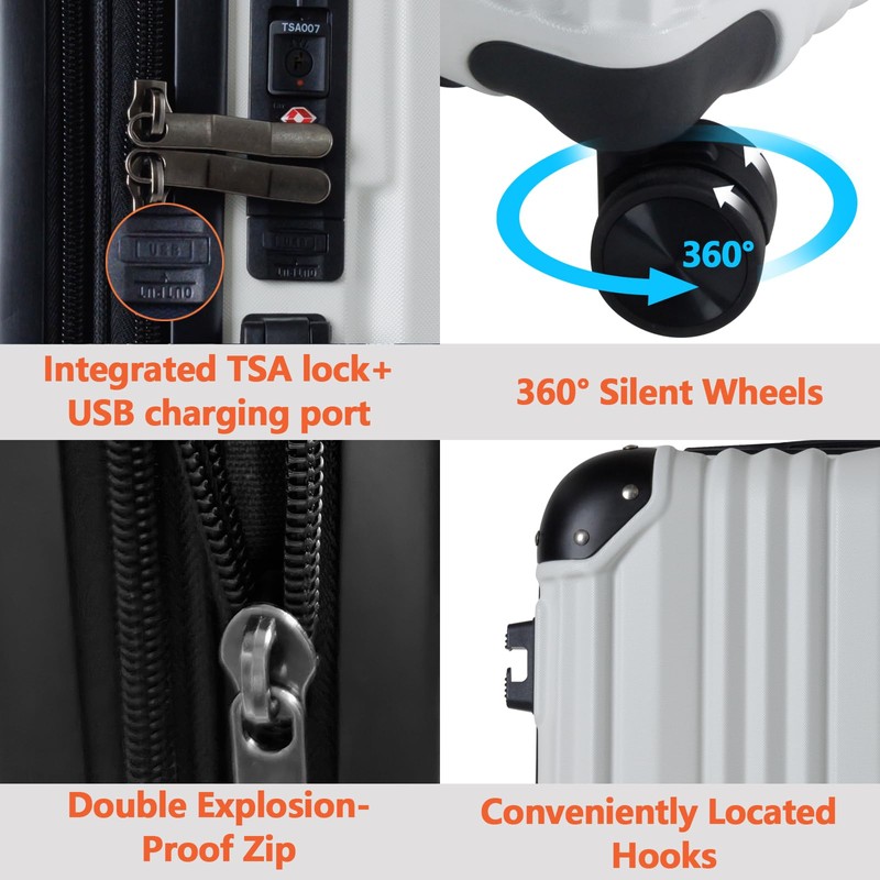 - CONVENIENT USB CHARGING PORT, PREMIUM ALUMINUM TELESCOPIC HANDLE: The built-in USB charging port lets you charge devices on the go. The aluminum telescopic handle adjusts smoothly for comfort. With dual-layer zippers and a well-organized interior, this set is perfect for frequent travelers and makes an ideal gift.