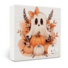 OVAcational Halloween Fall Wooden Box Sign Desk Decor, Rustic Autumn Pumpkin Cute Halloween Ghost Wood Block Sign for Home Bedroom Office Desk Table Shelf Wall Decorations, 5x5 Inch