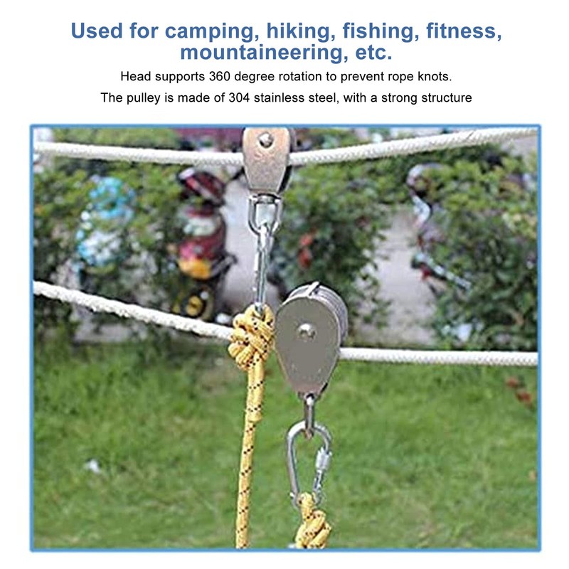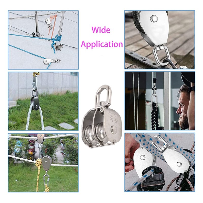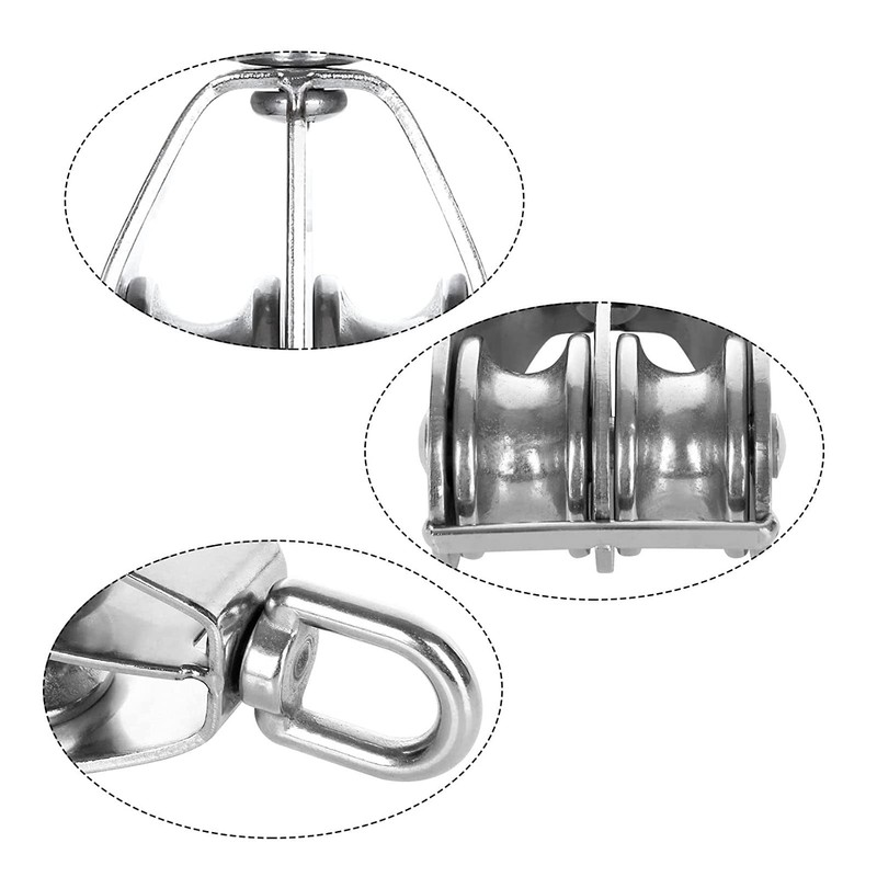 OVAQUIXI Stainless Steel Double Pulley Block, M25, 150kg Load Capacity, 2-Pack, for Camping and Hiking