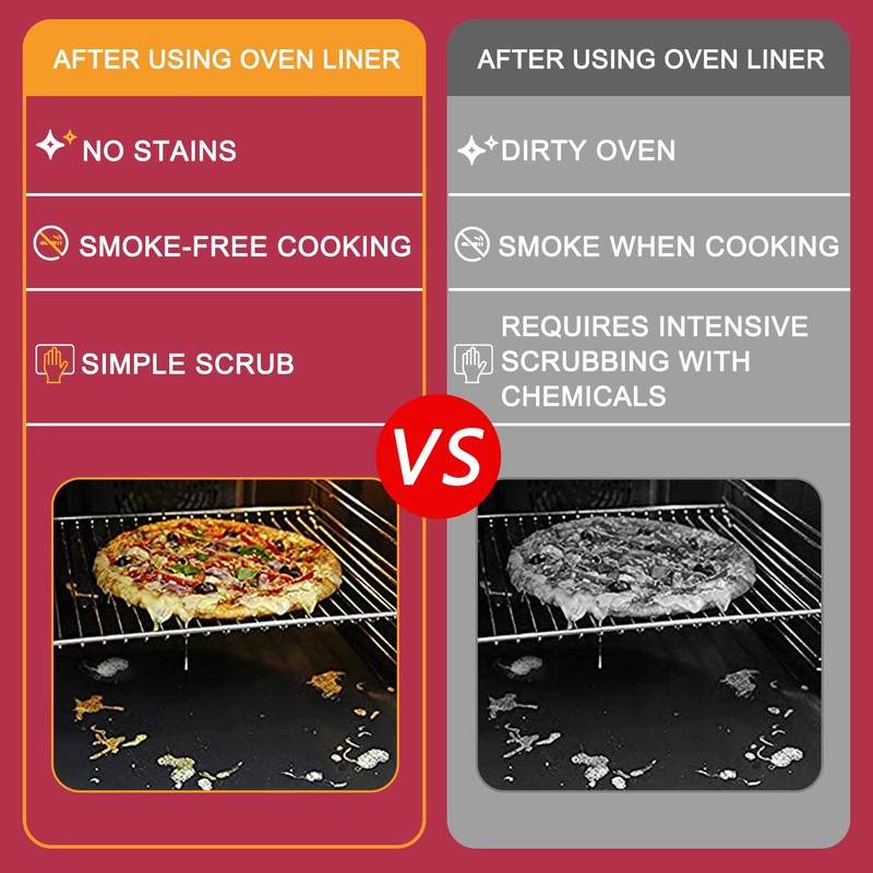 - ✔ KEEP YOUR OVEN CLEAN - Our oven liner for bottom of electric & gas oven saves you time and effort! These washable heavy-duty and non-stick oven liners help protect the bottom of your oven, so your oven will never be a splatter and burnt mess.