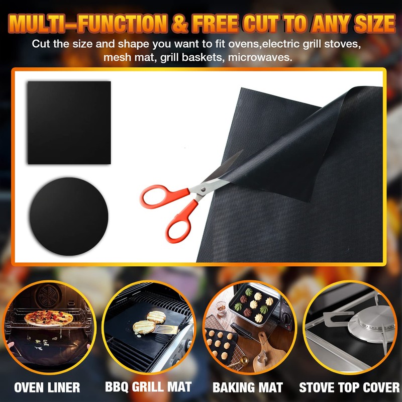 - PERFECT SIZE-Versatile oven liner for bottom of oven can be cut to perfectly fit your most full sheet standard-sized ovens. You can stick several oven floor protector liner together to expand range of use. Oven liner can be used as oven liners for bottom rack of gas electric oven,oven bottom mat,oven drip mat,oven spill mat,oven sheets for bottom of oven,nonstick bbq grill mats,cooking mats, baking mats,baking sheet,pan liner,toaster oven liner,stove burner covers,dish mats,heat resistant mat.