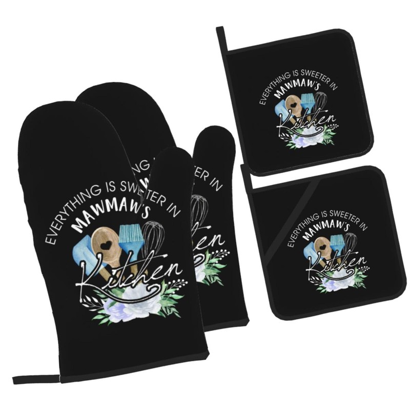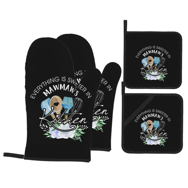 Oven Mitts and Pot Holders Sets of 4 Heat Resistant Oven Gloves Potholder for Kitchen Cooking Baking BBQ (Kitchen)