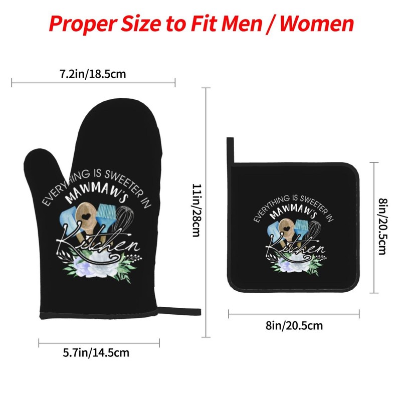 - ✬〖Suitable Size〗The size of the gloves in this 4Pcs oven gloves hot pads is 5.7x11x7.2 inches, which can be used by both men and women. The extra long length can protect the wrists and forearms when cooking and baking. The pot pad measures 8x8 inches, which is perfect for placing hot pots, pans, plates, bowls and trays.