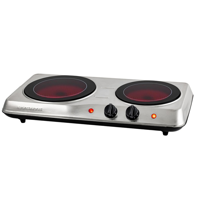 OVENTE Countertop Infrared Double Burner, 1700W Electric Hot Plate and Portable Stove with 7.75" and 6.75" Ceramic Glass Cooktop, 5 Level Temperature Setting and Easy to Clean Base, Silver BGI102S
