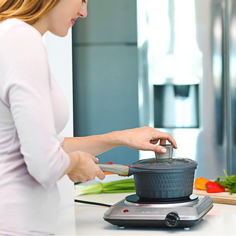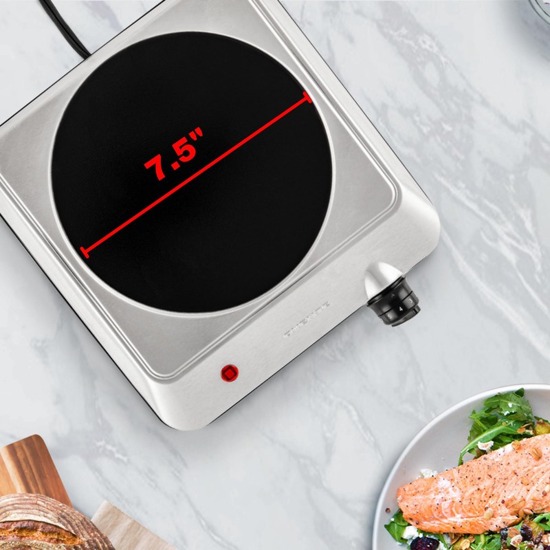 - COMPATIBLE WITH ALL COOKWARE – Unlike an induction cooktops, this kitchen countertop burner works well with virtually all types of cookware. In order to have the best result, use a flat cookware as close to the size of the burner as possible (7.5" in diameter).