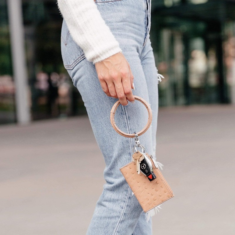 Oventure, Leather Big O Key Ring, The Original Bracelet Keychain (Mocha Ostrich)