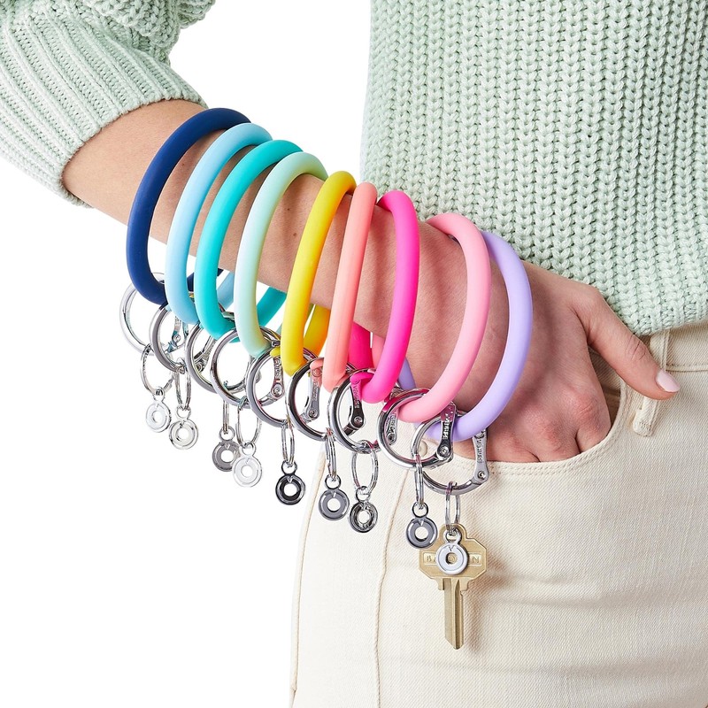 Celebrate the little wins in life (like carrying all of your groceries in at once) with the Confetti Silicone Big O Key Ring. The Original Big O Key Ring is a one-size-fits-all bracelet key ring that can be worn on your forearm or above your elbow for hands-free ease. The patented, signature locking clasp clicks open and closed so you can contain your house keys, car keys, card case and more in one central, secure location. Whether you’re trying to get the kids to school, running late to class, walking the dog, or a boss babe with a million things on her plate, the Big O Key Ring was designed to keep your essentials (and sanity) in check at all times.