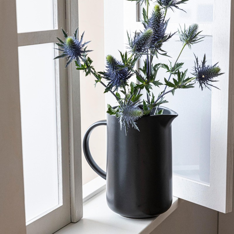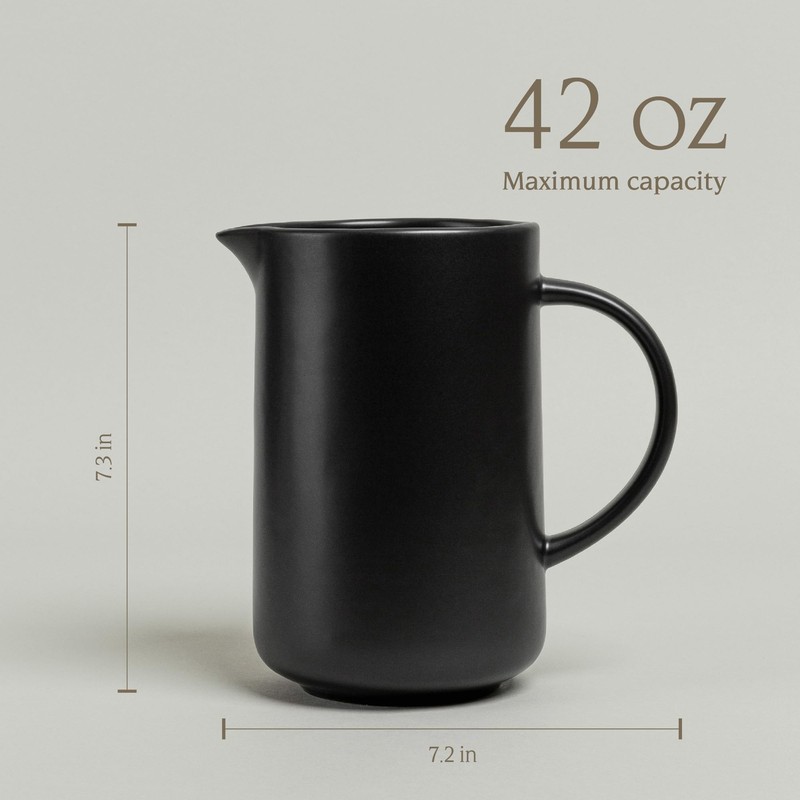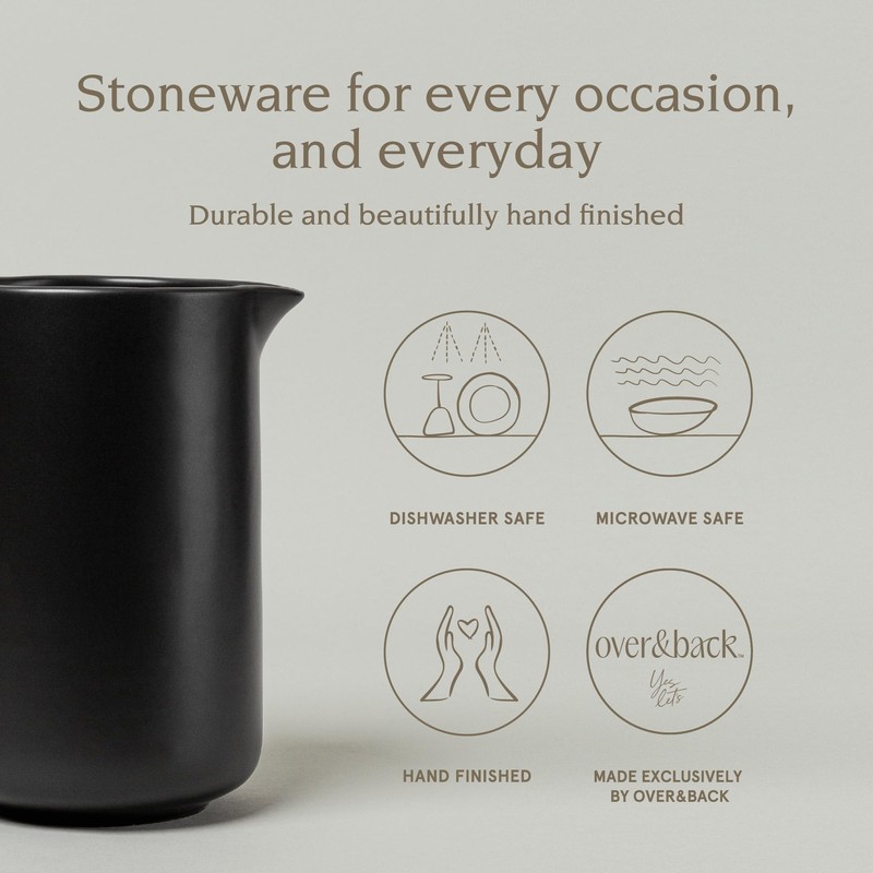 over&back Coupe Stoneware Pitcher - Elegant Water Pitcher for Home Decor and Beverages - Use as a Serving Pitcher or Decorative Vase - 42 Oz - Semi-Matte Black