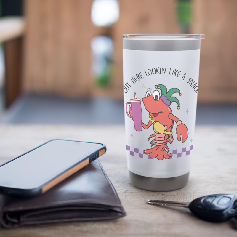 Over Here Looking Like A Snack Mardi Gras Crawfish Stainless Steel Insulated Tumbler
