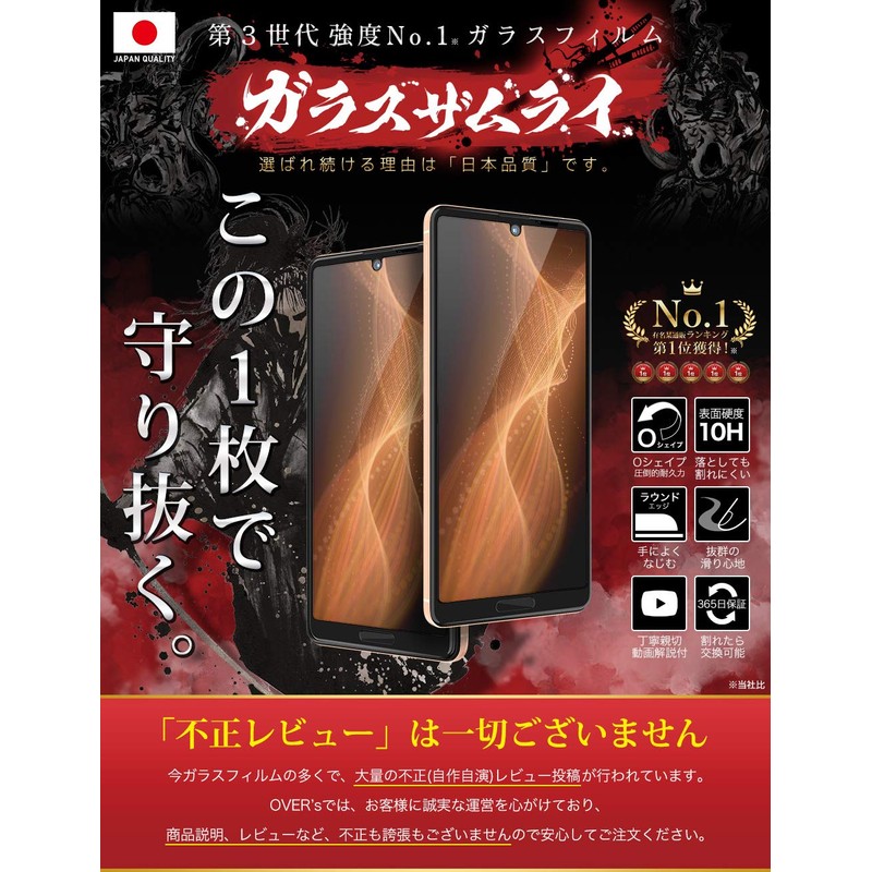 OVER's ガラスザムライ AQUOS Sense 5G 用 ガラスフィルム SH-53A 用 SHG03 用 A004SH 用 全面保護 黒縁 硬度1...
