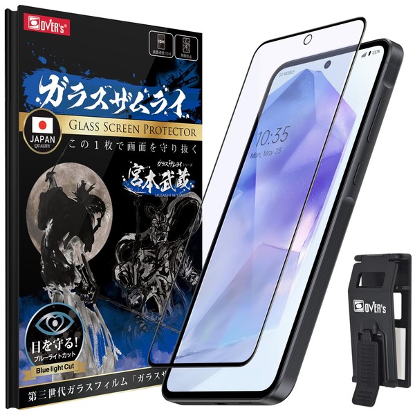 OVER's ガラスザムライ Galaxy A55 5G 用 ガラスフィルム ブルーライトカットSC-53E 用 硬度10H らくらくクリップ付き 405-blue-3d