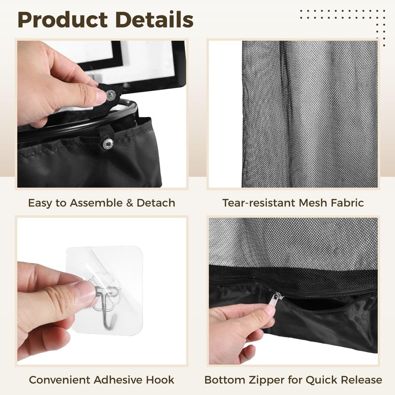 - Sturdy and Visible Mesh: Made with high-strength black mesh fabric and sturdy metal hoop; precision grid prevents small items from slipping through and offers easy visibility; strong structure maintains shape under load