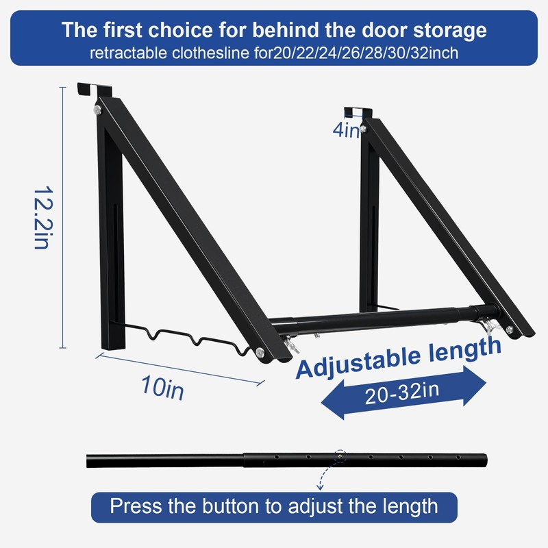• Retractable&Foldable-The over door drying rack length can be adjusted between 22-32 inches, the length is controlled by a latch and the clothes drying rack foldable when you are not using it, it is the best choice for portable clothes rack
