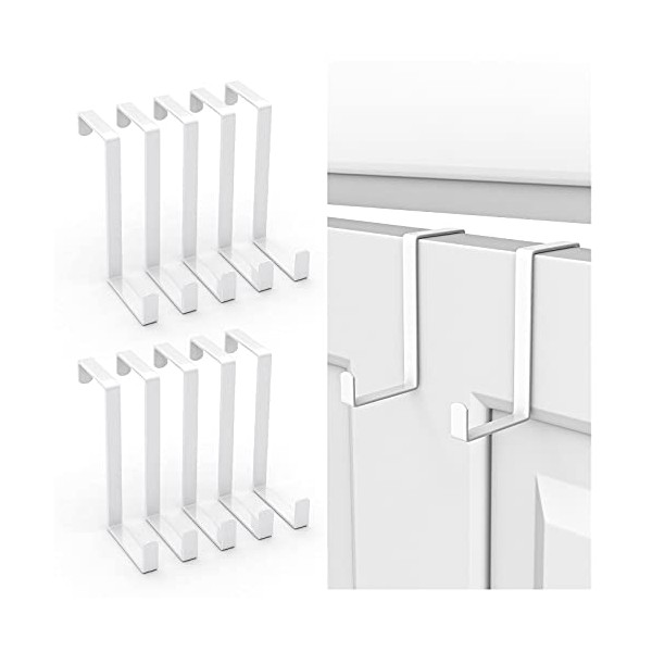 Over The Door Hooks 10 Pack, Z-Shaped Door Hanger Hook Fits The 1 3/8” and 1 3/4” Door Widths, Reversible Sturdy Metal Over Door Hooks for Hanging Clothes, Coats, Towels and Shoe Organizers (White)