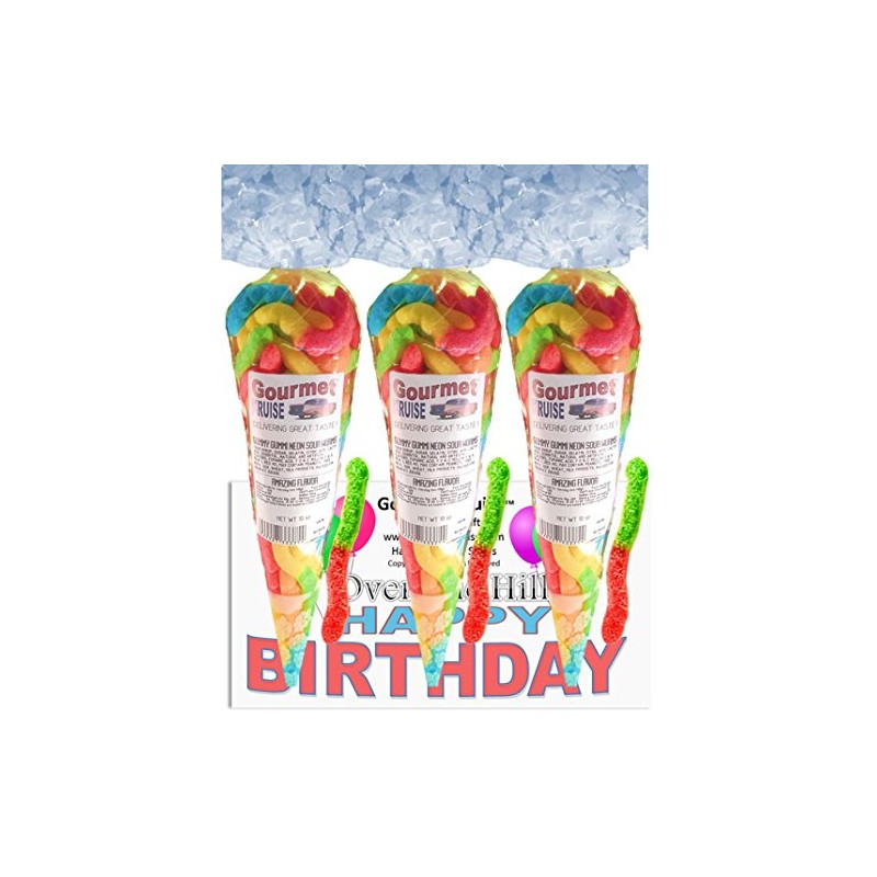 Over The Hill Happy Birthday Series Bright Sour Worms (NET WT 31 OZ) (Pack of 3) In 1 Box Gourmet Kruise Signature Gift Bags