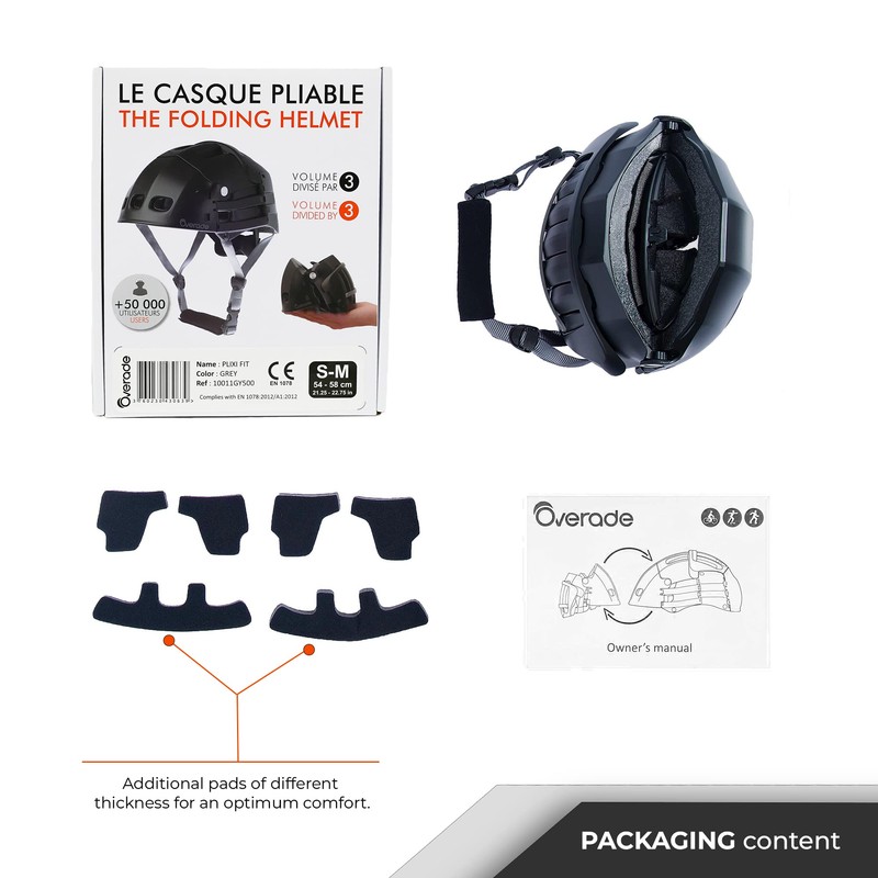 - More practical than a classic helmet. The plixi is the most compact headset on the market. Thanks to its unique and patented folding system, the helmet volume is divided by 3 when folded. It easily fits in a backpack, bag, small, or handbag.