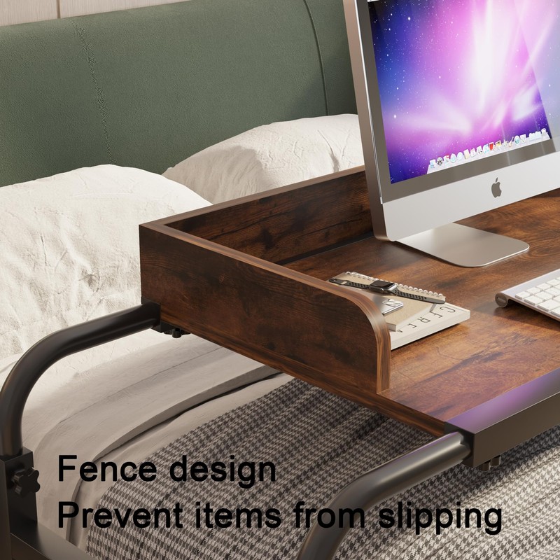 Overbed Table with Wheels Overbed Desk Over Bed Desk King Queen Bed Table Overbed Laptop Table Over Bed Table with Wheels(Brown)