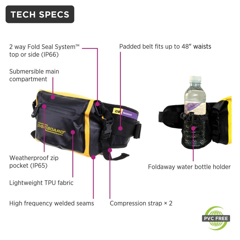 Overboard Waterproof Waist Pack OB1164BLK 4 liters, 27 x 15 x 10 cm