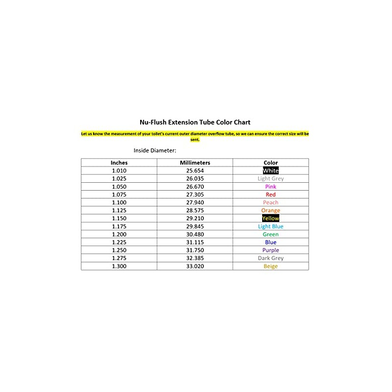 Order this package if the outer diameter of your existing overflow tube is between 1 inch and 1& 1/16th inches, or 26.035 mm to 27.940 mm. Our package of 4 overflow extension tubes are designed to make your toilet flush better. Simply slide the overflow tube extension over your existing overflow tube and glue in place with silicone glue provided. The height of the tube needs to fall 1/2 inch below the handle hole on the toilet tank. Our customized package contains 4 tubes that have 25/1000 of an inch difference in the outer diameter measurement. Tubes are 8 inches long and can be cut to a custom length.