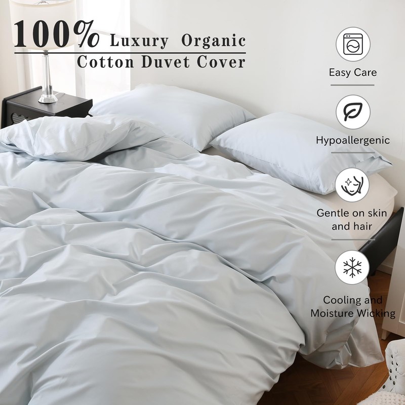 - SOFT BREATHABLE:Our 100% Organic Cotton Duvet Cover Set Features Superior Moisture Absorption,Ensuring That You Stay Comfortable And Smooth All Year Round.It Is Breathable, Keep You Cool In The Summer And Dry And Warm In The Winter; Durable And Soft, High Density Fabric Keep Duvet Cover's Shape And Softness After Every Wash