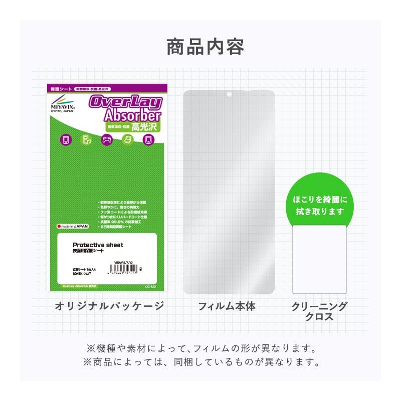 Self-adsorption type means no double-sided tape or glue required for easy application. Replace the surface of the seat if scratches or texture deterioration becomes noticeable. OverLay Absorber is a screen protector that protects the screen from impact with a shock absorbing layer. It also reduces glare characteristic of anti-glare, and the anti-reflection (LR layer) coat makes it closer to the original color emitted from the display. Hard coat with a surface hardness of 3H, excellent scratch resistance and scratch resistance. Antimicrobial function with Agion power.