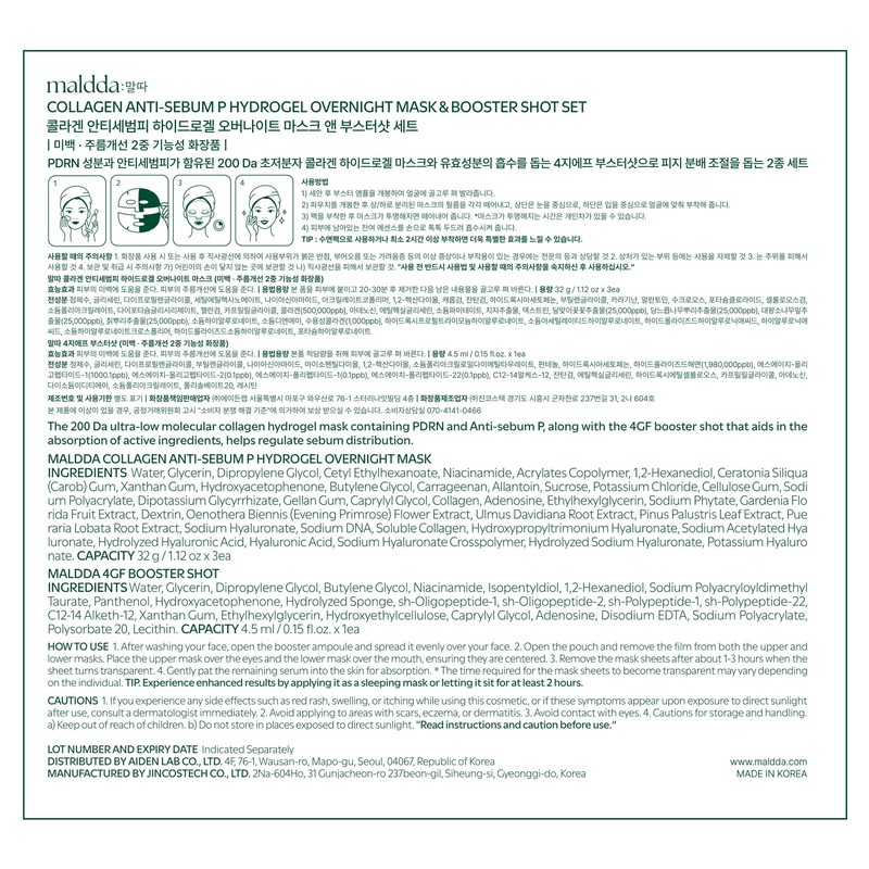 Overnight Collagen Face Mask 3 Step Pore Minimizer Hydrogel Sheet&Boost Serum-Oil Control PDRN-Tightening Exosome-Elasticity Retinal - #1 (3 Pack)