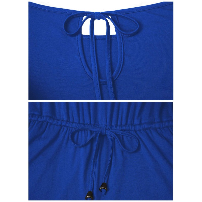 overol corto de verano para mujer con lazo frontal y bolsillos, Azul Real, S