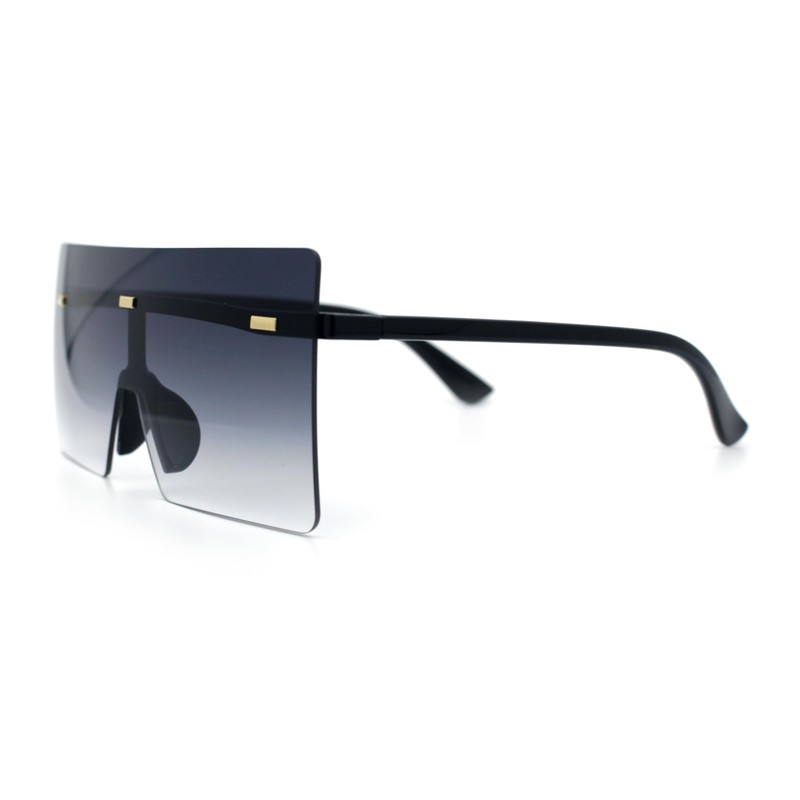 Oversize Rimless Shield Square Rectangle Large Sunglasses Black - Smoke