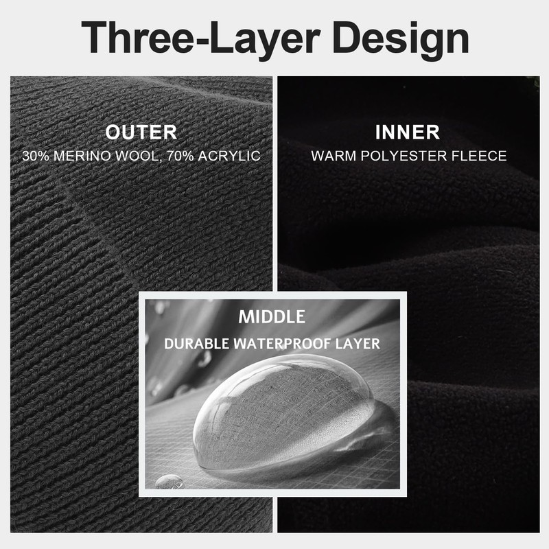 - 3 Layers, Waterproof & Windproof: Our rainproof and windproof cuffed beanie is made with 3 layers, OUTER is made of 30% merino wool and 70% acrylic, INNER is made of warm polyester fleece, MIDDLE is durable waterproof membrane. Our beanie can prevent your head from getting wet by rain or snow, block the cold air and lock the heat, making it an ideal choice for outdoor activities like hunting, skiing, hiking or any outdoor sports - ideal for extreme cold weather conditions.