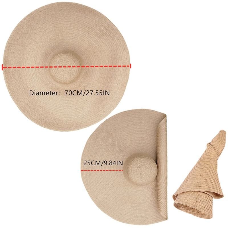 Oversized Beach Straw Hats for Women Floppy, Extra Large Sun Visor Hat Wide Brim Summer Packable Huge Roll Up Big Beach Hat for Women Foldable, Khaki
