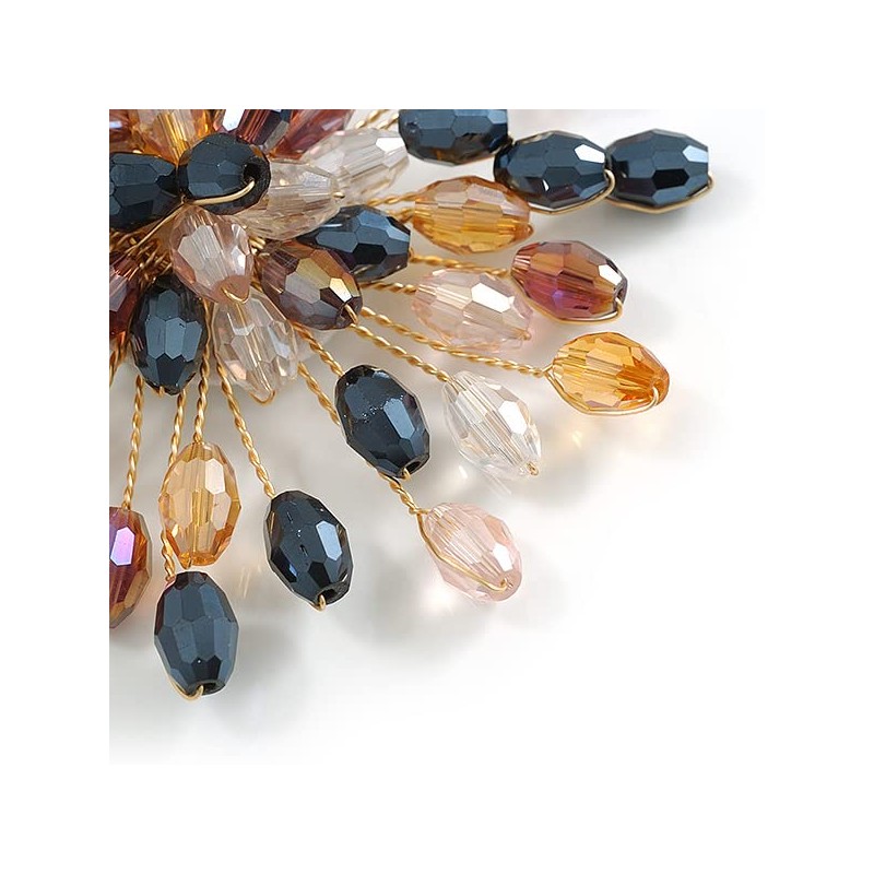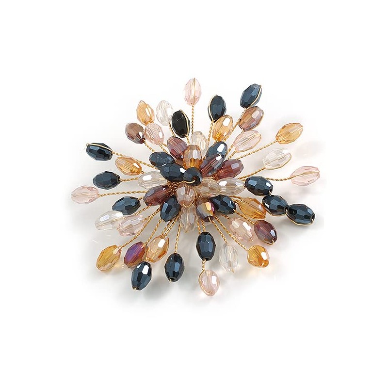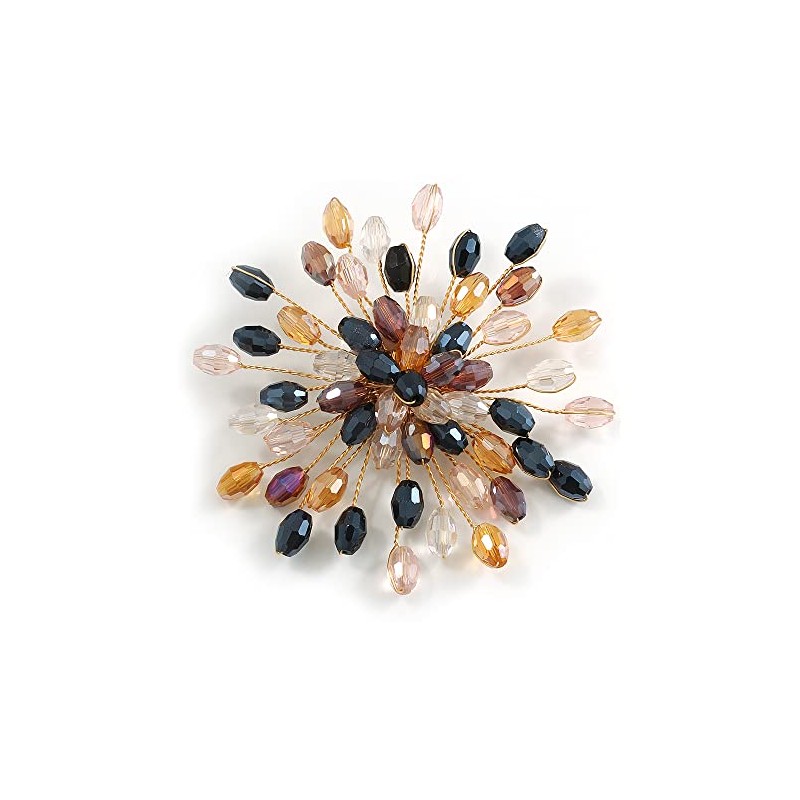 Oversized Layered Multicoloured Faceted Glass Bead Gold Wire Brooch/Handmade/...