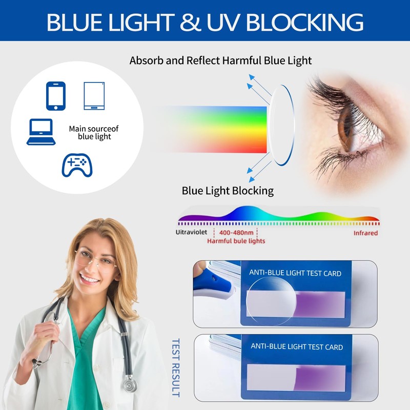 - 【Blue light blocking reading glasses】Innovative multi-layer coated lenses accurately filter 90% of harmful blue light, relieve eye pain, dryness, and itching. Presbyopia correction, clear viewing of mobile phones and documents without fatigue, one lens meets dual needs.