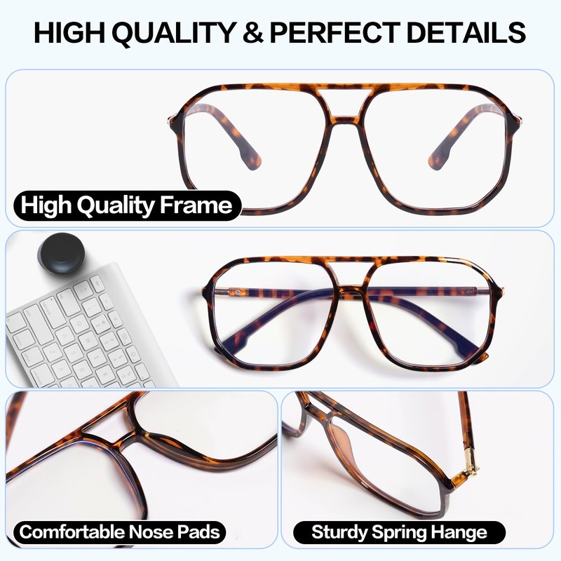 Oversized Square Aviator Reading Glasses for Women/Men - Large Frame Blue Lig...