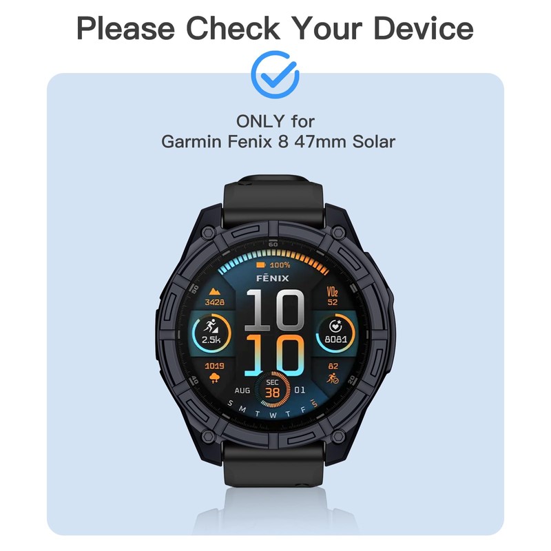• Applicable Models - Designed for Garmin Fenix 8 47mm Solar , Please kindly select the correct size for your Fenix 8 before order.(Not for Garmin Fenix 8 47mm)