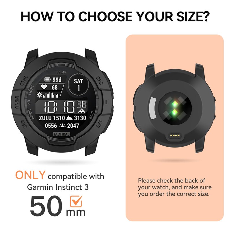 - 【Full Protection for Garmin Instinct 3 50mm】Designed for the Garmin Instinct 3 Amoled/Solar 50mm, this TPU bumper case provides full protection against drops, scratches, and daily wear. Perfect for outdoor activities, keeping your smartwatch safe from bumps and impact.