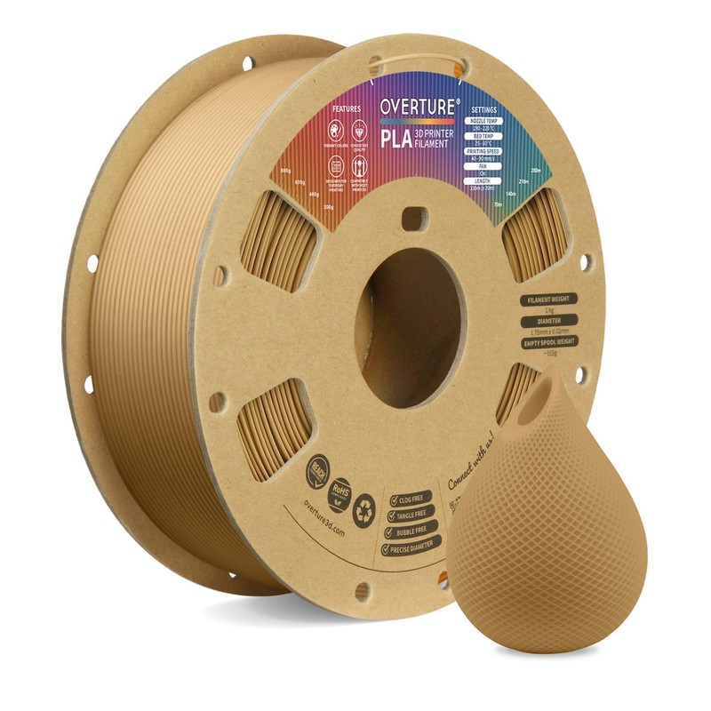 OVERTURE OVERTURE PLA Filament 1.75mm PLA 3D Printer Filament, 1kg Cardboard Spool (2.2lbs), Dimensional Accuracy +/- 0.02mm, Fit Most FDM Printer (Brown)