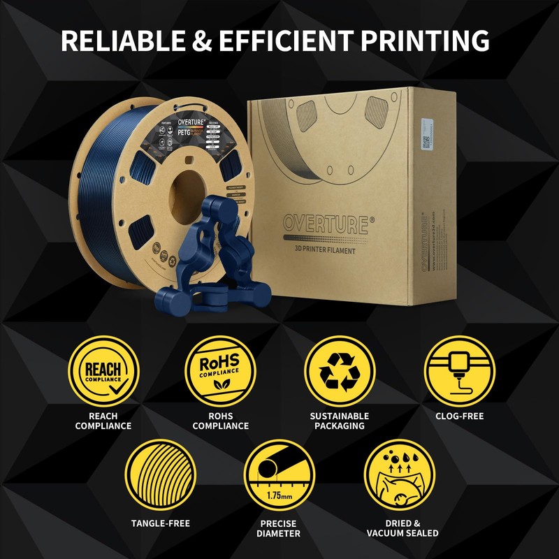 - 【High Performance & Compatibility】 Combines the advantages of both PLA and ABS with Overture PETG, featuring the ease of printing with PLA and improved mechanical properties of ABS, including enhanced impact resistance and superior layer adhesion
