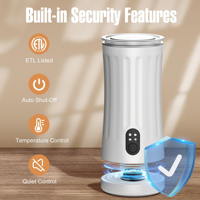 It has a stylish and modern design that not only foams milk, but also adds a touch of elegance to your countertop or cabinet. It features advanced temperature control and automatic shut-off function. One-click operation makes the milk foaming process easy and fast.