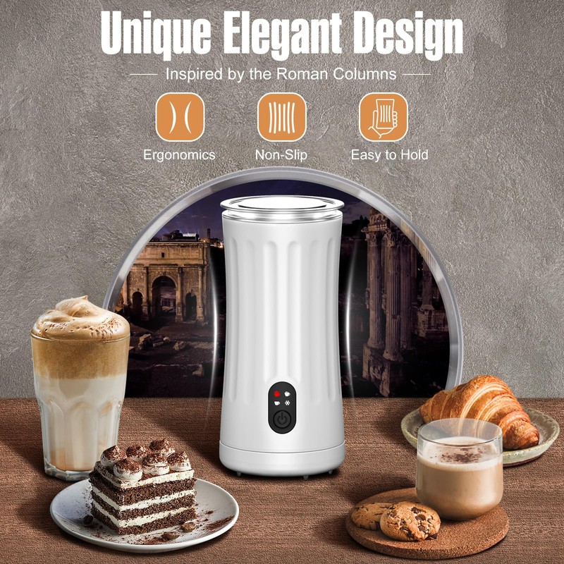 • [Unique Elegant Shape Design]: The electric milk frother adopts an extraordinary shape inspired by the Roman Column, not only bringing you the visual pleasure but also significantly enhancing the using experience; the ergonomic design makes sure that it is non-slip and easy to hold.