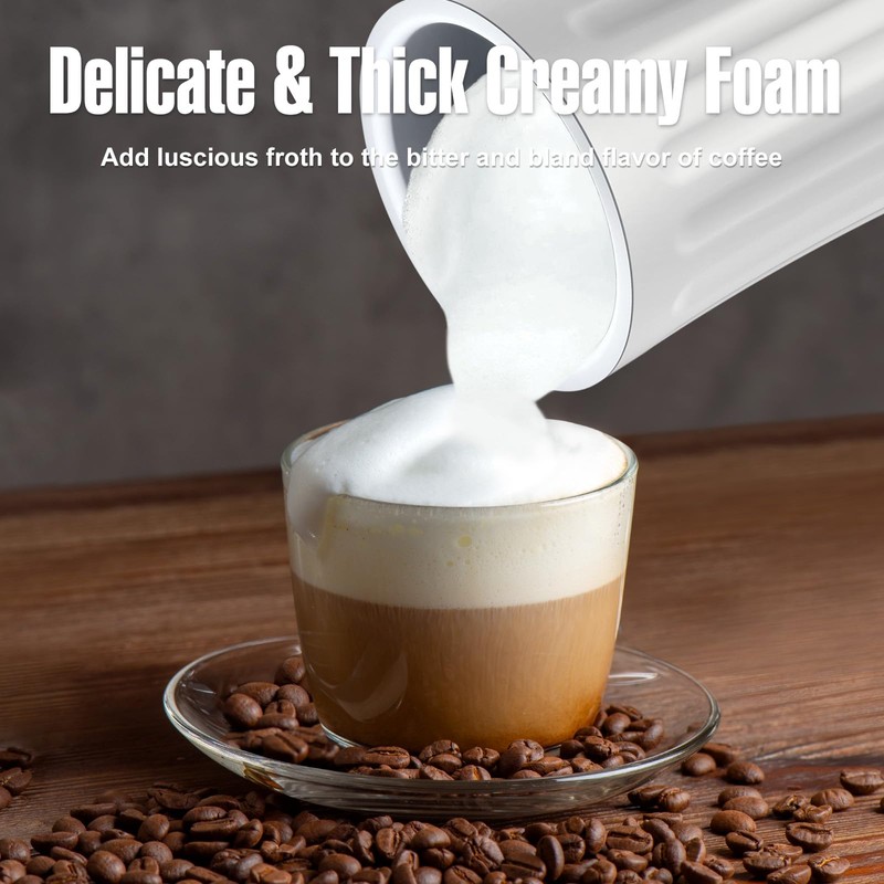 • [Indulge in Luxury with Every Sip]: With an high-speed motor, the milk frother quickly creates a velvety, silky, creamy, and long-lasting foam layer. The taste is as luxurious as velvet, soft and unparalleled. Even under the breeze, the foam remains stable for a long time and always maintains a perfect taste.