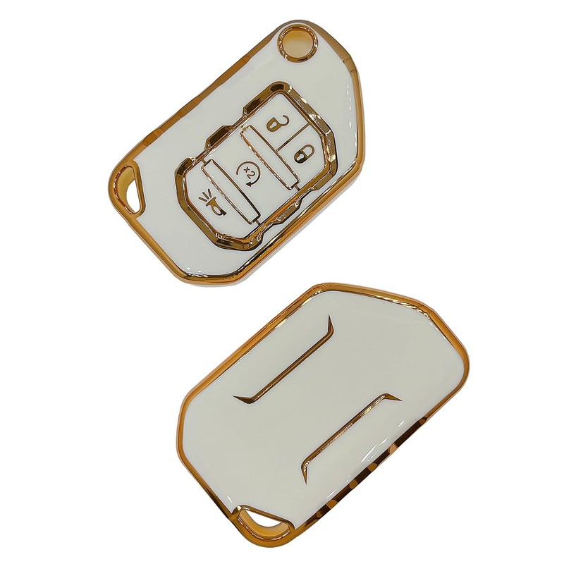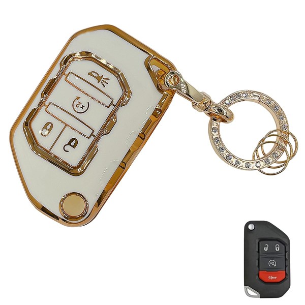 OVIOBOER For Jeep Key Fob Cover with Keychain, White Soft TPU Key Case Shell Full Protection for Wrangler JLU JL Gladiator Rubicon JT Car Flip Smart Remote Key (For Jeep B)